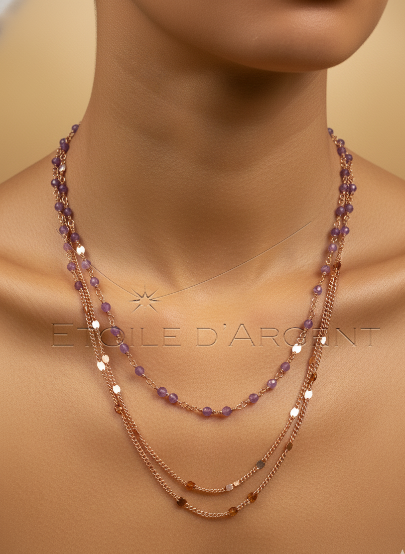 Laissez-vous envoûter par le sautoir Étoile d'Argent, une cascade de charme qui illuminera votre décolleté. Ce collier exceptionnel est composé d'une double chaîne en argent sterling 925, où s'entrelacent harmonieusement des perles aux nuances chatoyantes et des cristaux étincelants. Sa longueur généreuse (110cm) et son style bohème chic en font un bijou unique, parfait pour ajouter une touche de magie à votre quotidien