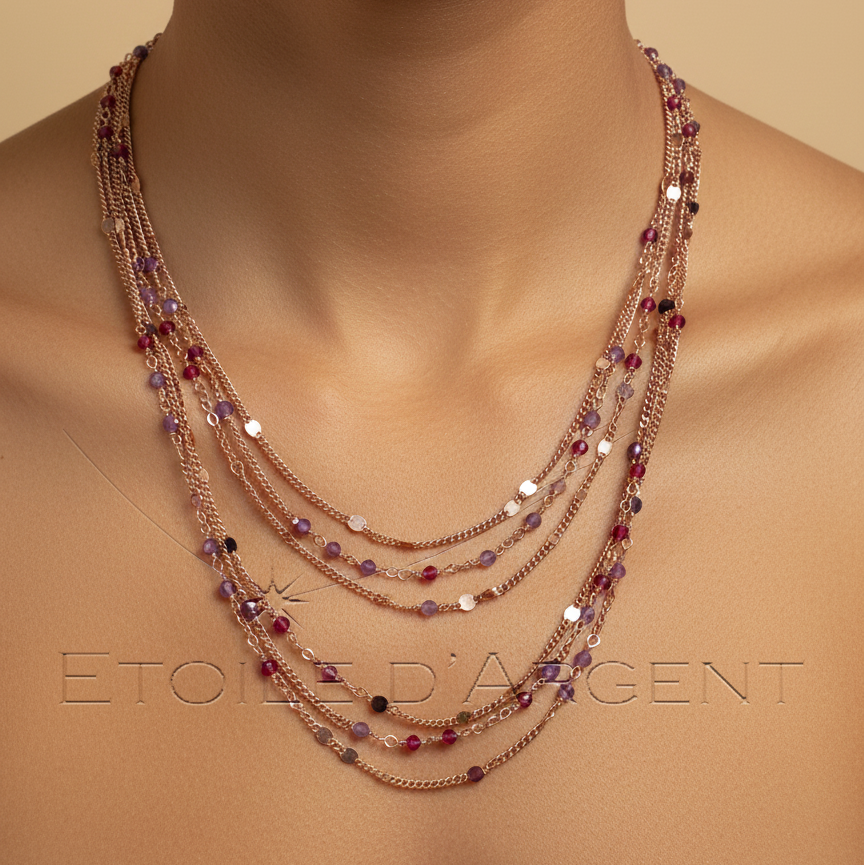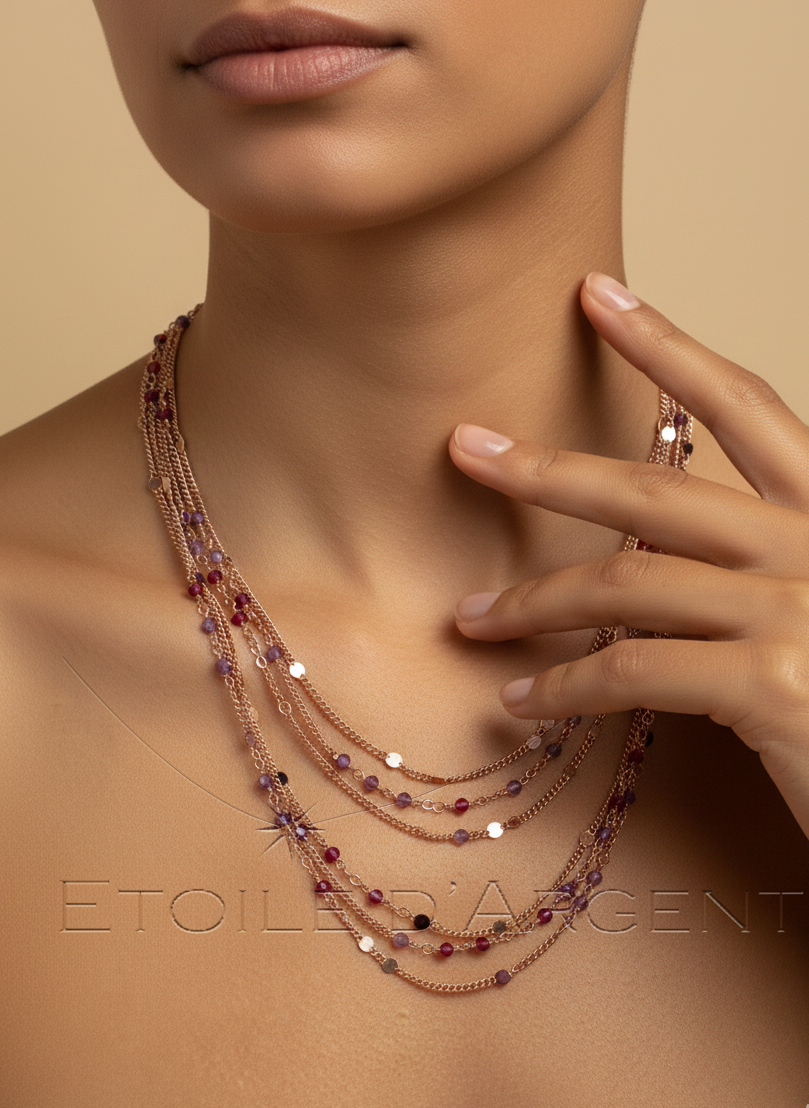 Laissez-vous envoûter par le sautoir Étoile d'Argent, une cascade de charme qui illuminera votre décolleté. Ce collier exceptionnel est composé d'une double chaîne en argent sterling 925, où s'entrelacent harmonieusement des perles aux nuances chatoyantes et des cristaux étincelants. Sa longueur généreuse (110cm) et son style bohème chic en font un bijou unique, parfait pour ajouter une touche de magie à votre quotidien.