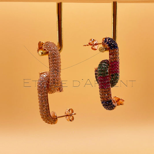 Boucles d'Oreilles en Argent 925 Plaquées Or Rose, Pierres Multicolores: Éclat Arc-en-Ciel